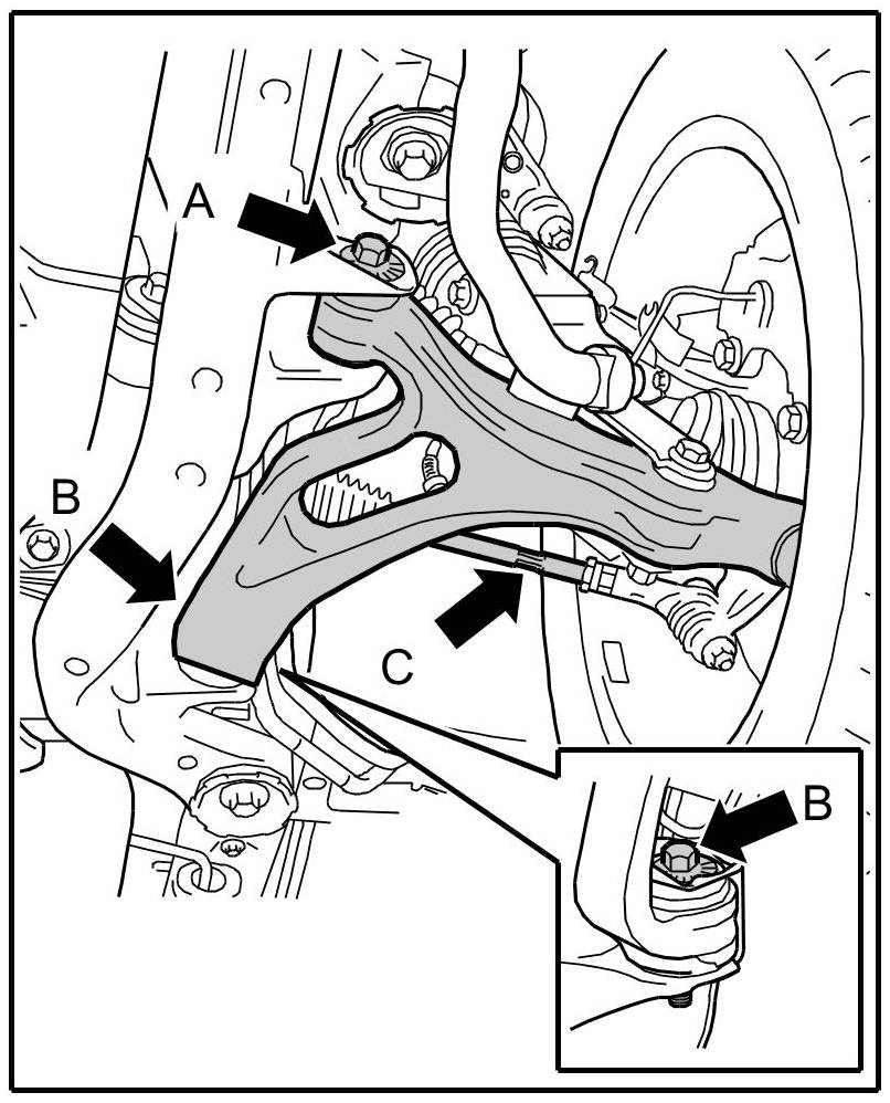 Specified tightening torque of lock nut(s) -C- = 70 Nm (52 ftlb.).
