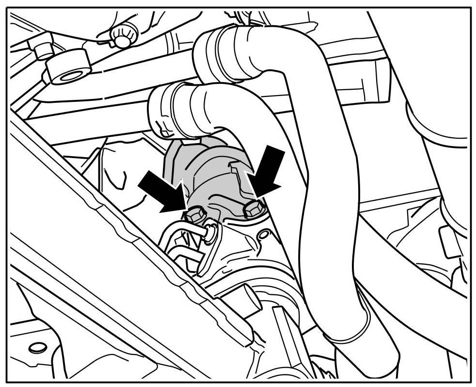4. Remove cover for underbody (transmission protection) and heat shield from the steering -arrows-.