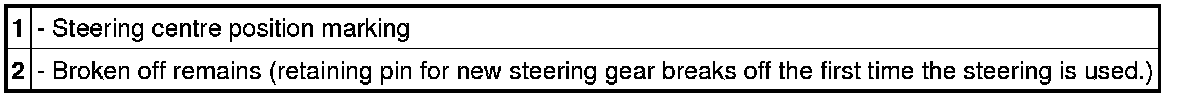 No. -2- is the remains of the desired breaking point from the locking pin on new steering gears. This locks the steering gear in the centre position. After installation of a new steering gear, the lower part of the pin is sheared off at the desired breaking point by turning the steering wheel.