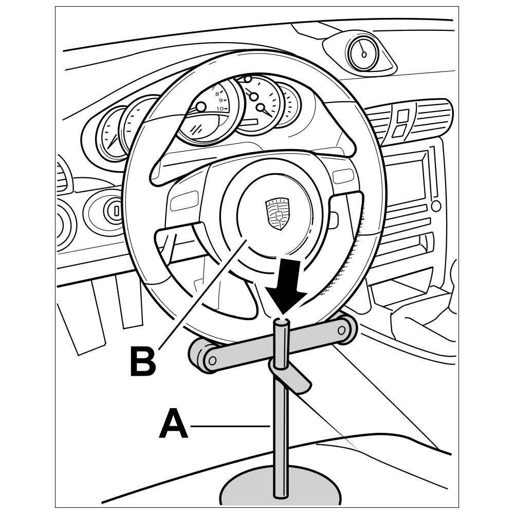 7. Clamp steering wheel in centre position with steering wheel holder.