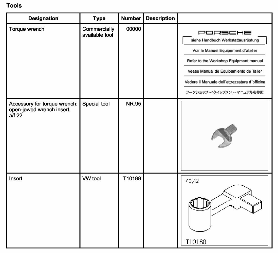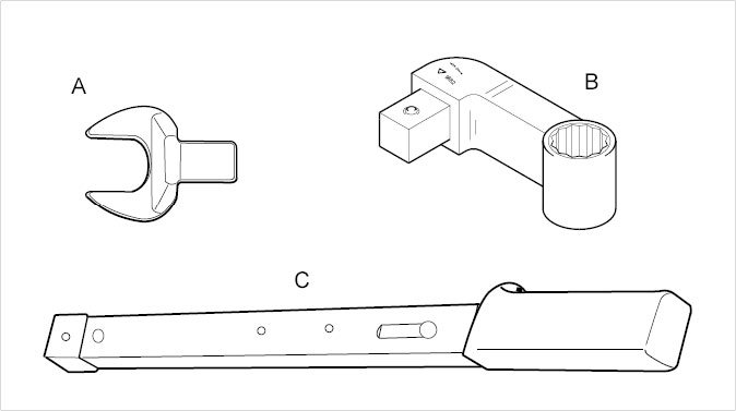 - - Torque wrench 00000 covering the range between 70 Nm (52 ftlb.) and 188 Nm (133 ftlb.). -
