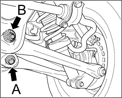 - After loosening fastening nut, turn camber eccentric adjuster -A- as required.