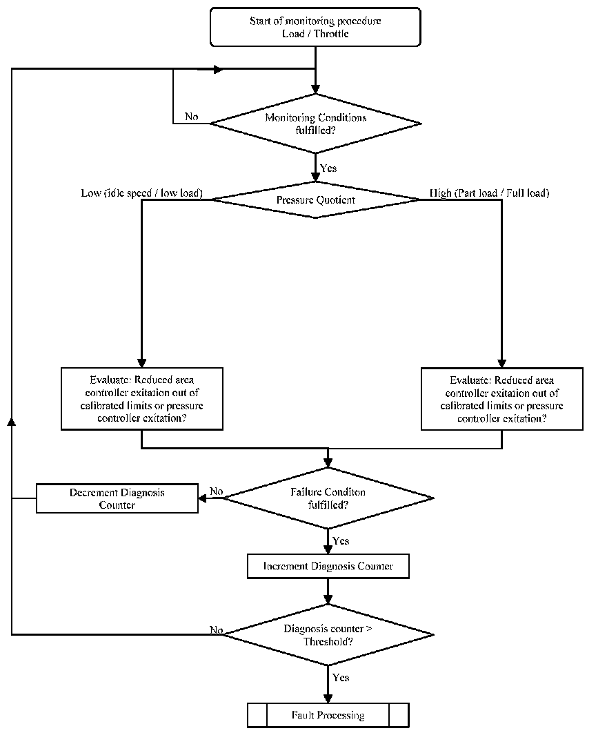 The Load-Throttle rationality check proofs the consistency between load (measured by mass air flow sensor) and throttle position. The rationality is checked by comparing the excitation of the intake manifold pressure controller or the throttle controller with the corresponding set point.