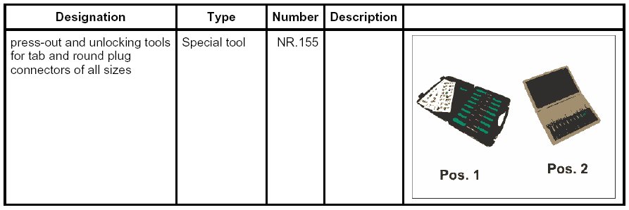 2. Position the press-out and unlocking tools for tab and round plug connectors of all sizes NR.155 on the primary locking mechanism and lift the locking mechanism.