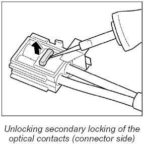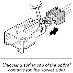 When exchanging the LWL, the optical contacts from the plug connection must be removed.