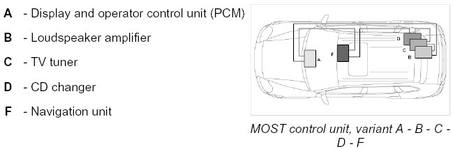 MOST control unit, variant A - D - E - F: