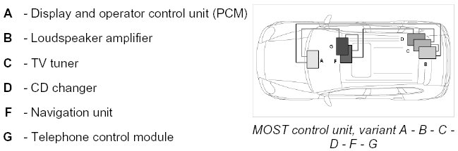 MOST Control Unit, Variant A - B - C - D - F - G: