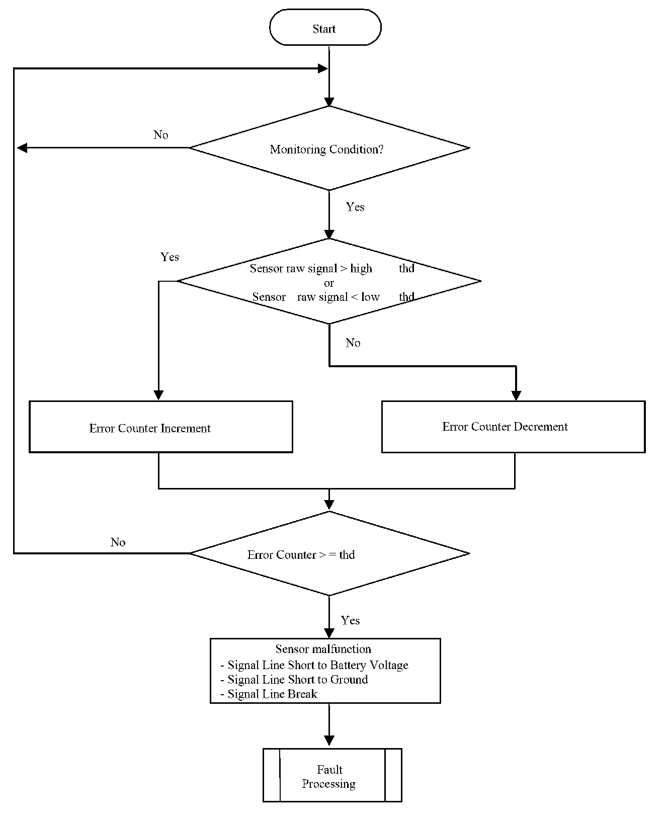 - Sensor signals out of a defined range are regarded as circuit malfunctions shorted to BATT, GND or Open circuit.