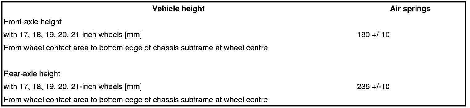 Wheel alignment values with air springs (all model years) and with Power KIT Turbo/Turbo S as of model year 2008/wheel alignment values with Power KIT Turbo/Turbo S model year 2005/2006