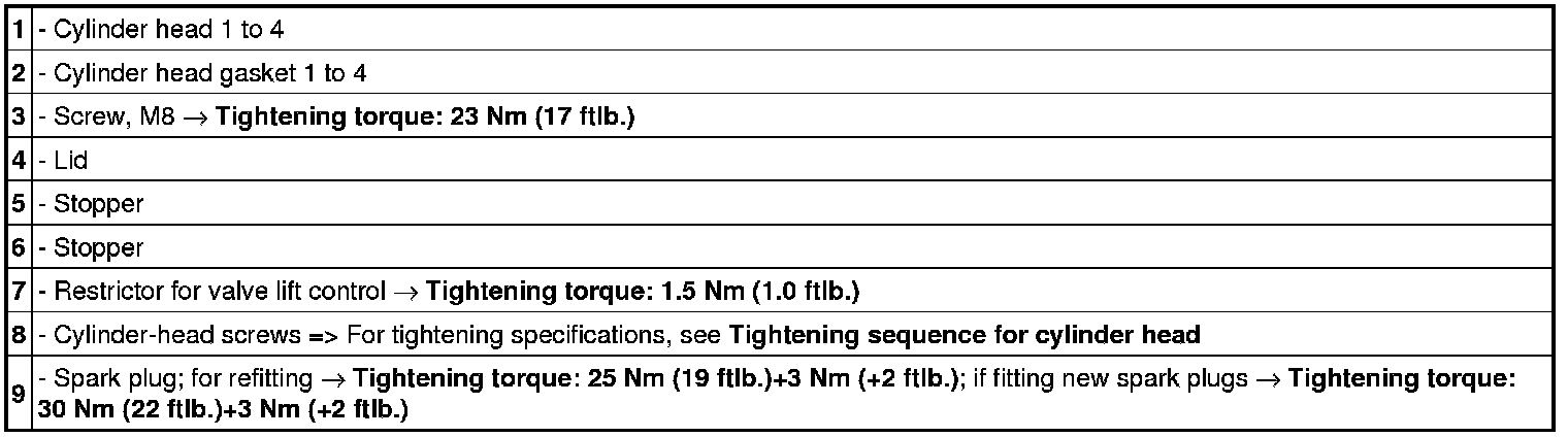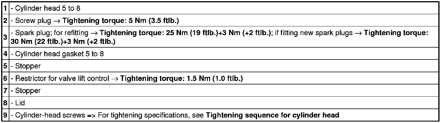 Cylinder head 5 to 8