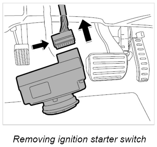 4. Press ignition switch inwards and remove towards the bottom.