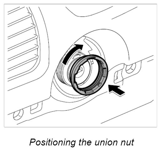 2. Position ignition starter switch in the dashboard. Position union nut, re-adjust switch and tighten union nut using wrench T10152. - Tightening torque: 1 ftlb.