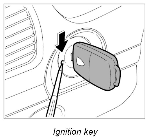 1. Push a ball-point pen, for example, into the opening next to the key, turn the ignition key to position 0 and pull out.