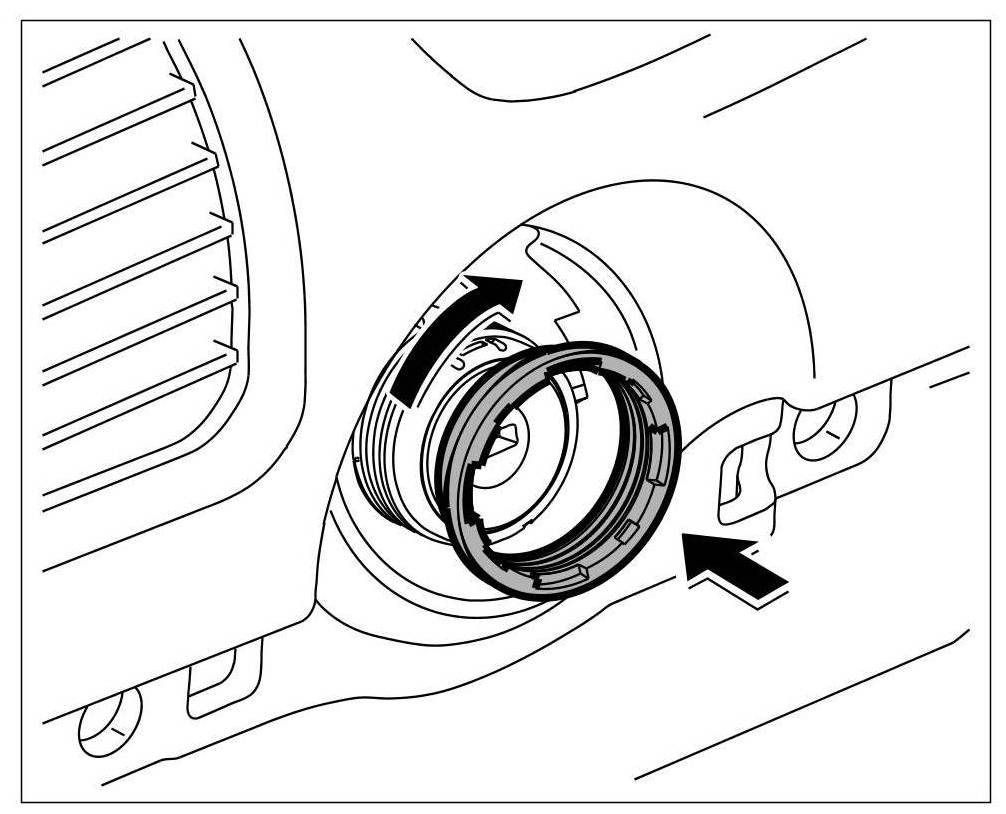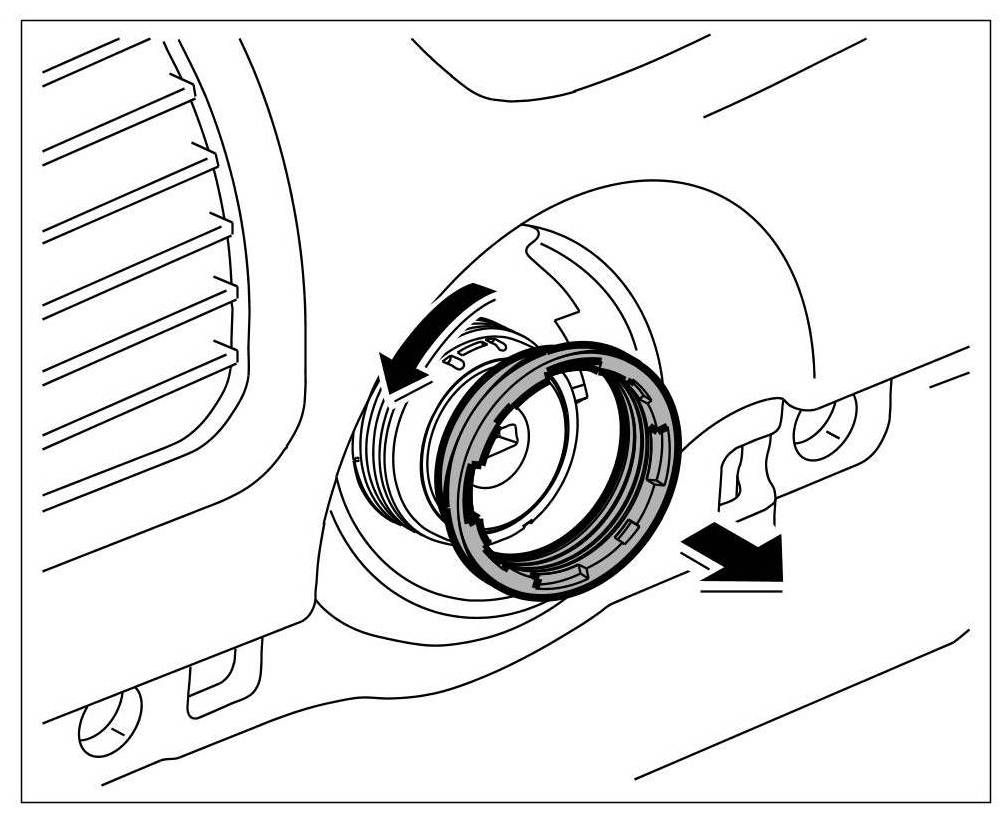 3. Turn union nut using a narrow plastic spatula, for example, or using the special wrench T10152 tool and unscrew the ring from the ignition starter switch.