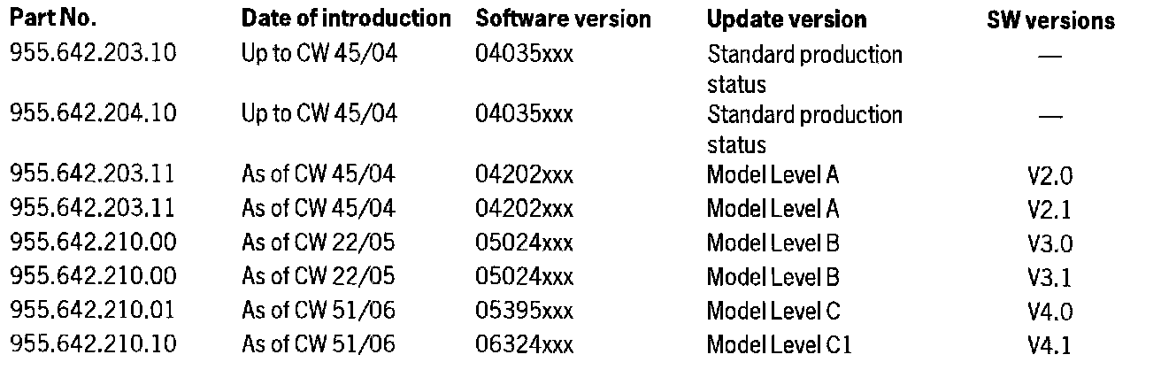 To use the navigation DVD (labelled 08.2007 or higher), which is valid as of Model Level B, in equipment configured with Model Level A software, a software update of the PCM2.1 integrated system must be performed using the update CD "PCM2.1 Multimedia Update CD Cayenne" (software version 05024xxx). In the case of PCM2.1 systems with the standard software version (04035xx), the Model Level A software version (04202xxx) must first be installed.