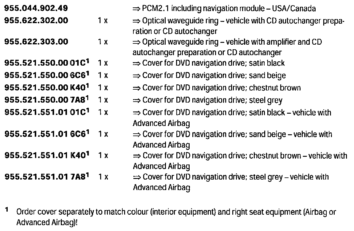 If "PCM2.1 including navigation module" is retrofitted at the same time as "Extended off-road navigation", the factory installed option "Compass display in instrument cluster (I-no. QR1)" is no longer used.