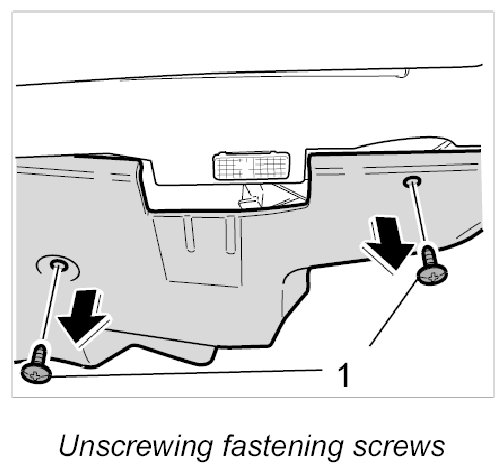 4. Unscrew both plastic screws -1- for the cover in the passenger's footwell and remove the cover downwards.