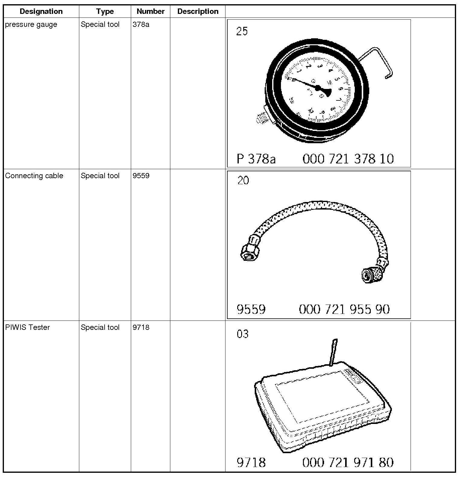 4. Connecting cable 9559 must be connected using the pressure gauge 378a (union nut a/f 17).