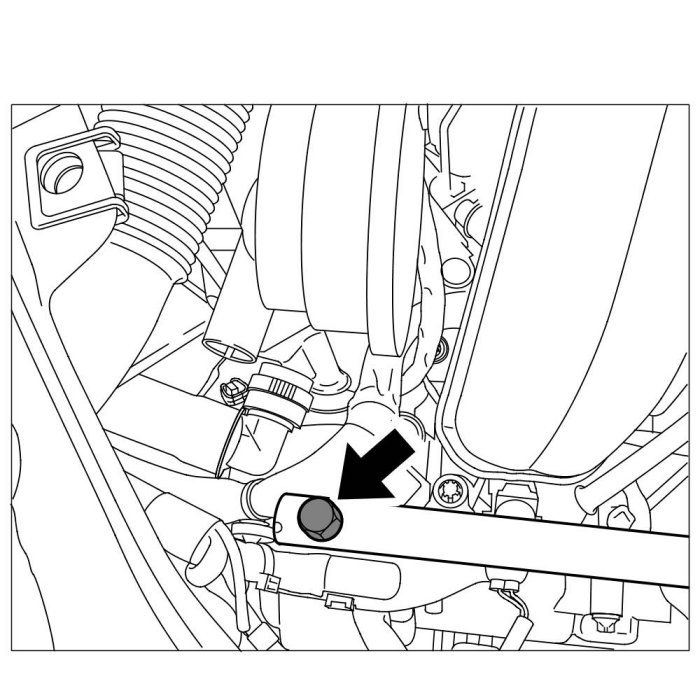 3. Release metal cap on test connection at fuel collection pipe -Arrow- and screw it off by hand (a/f 13 mm).
