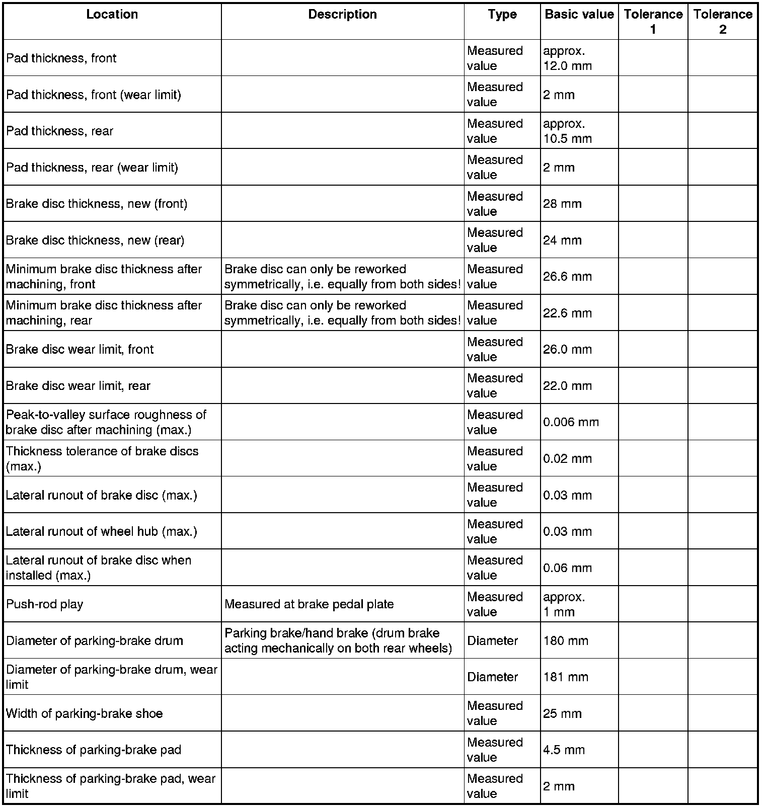 Test values/wear limits - Boxster S/Cayman S