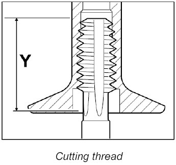 - While pressing in the base thread, a noticeably larger amount of force is required on the screw-in tool to form the internal thread. Pressing is finished when the screw-in tool can be turned further more easily.