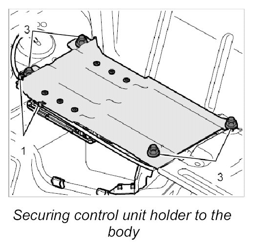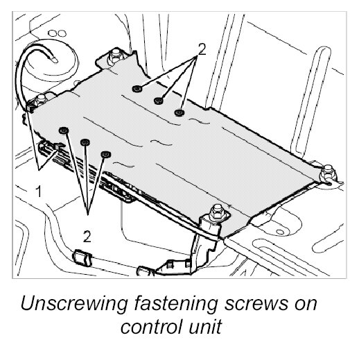 5. Unscrew the four fastening nuts -3- and remove the control unit holder.