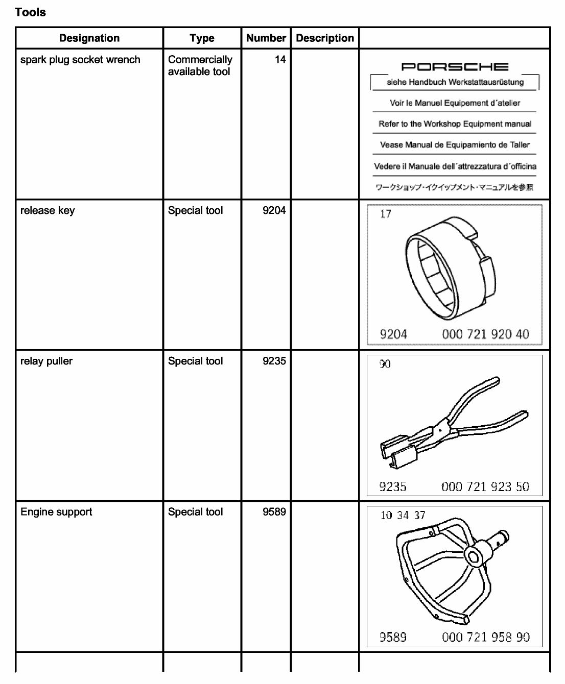 1. Engine support 9589 must be secured to the crankcase using special tool mounting elements 9590. Refit engine with support on the engine assembly support.
