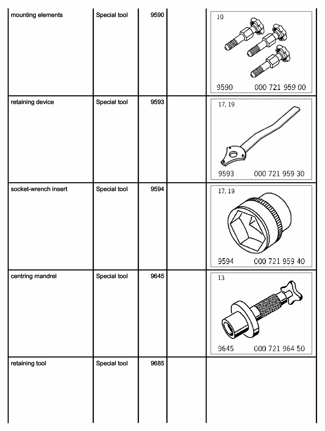 Retaining tool 9685