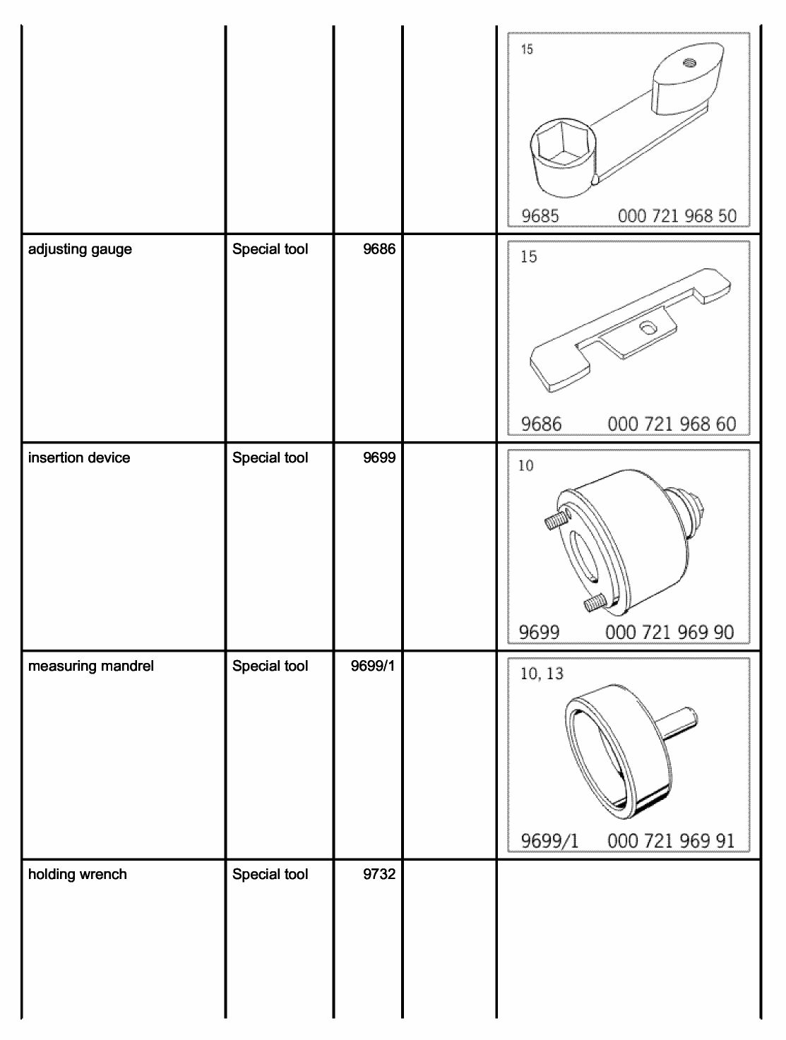 42.1. To do this, turn the engine clockwise until the TDC mark on the pulley or the vibration balancer is aligned with the marking on the crankcase. To check cylinder 4-6, insert the special tool adjusting gauge 9686 into the camshaft slots.