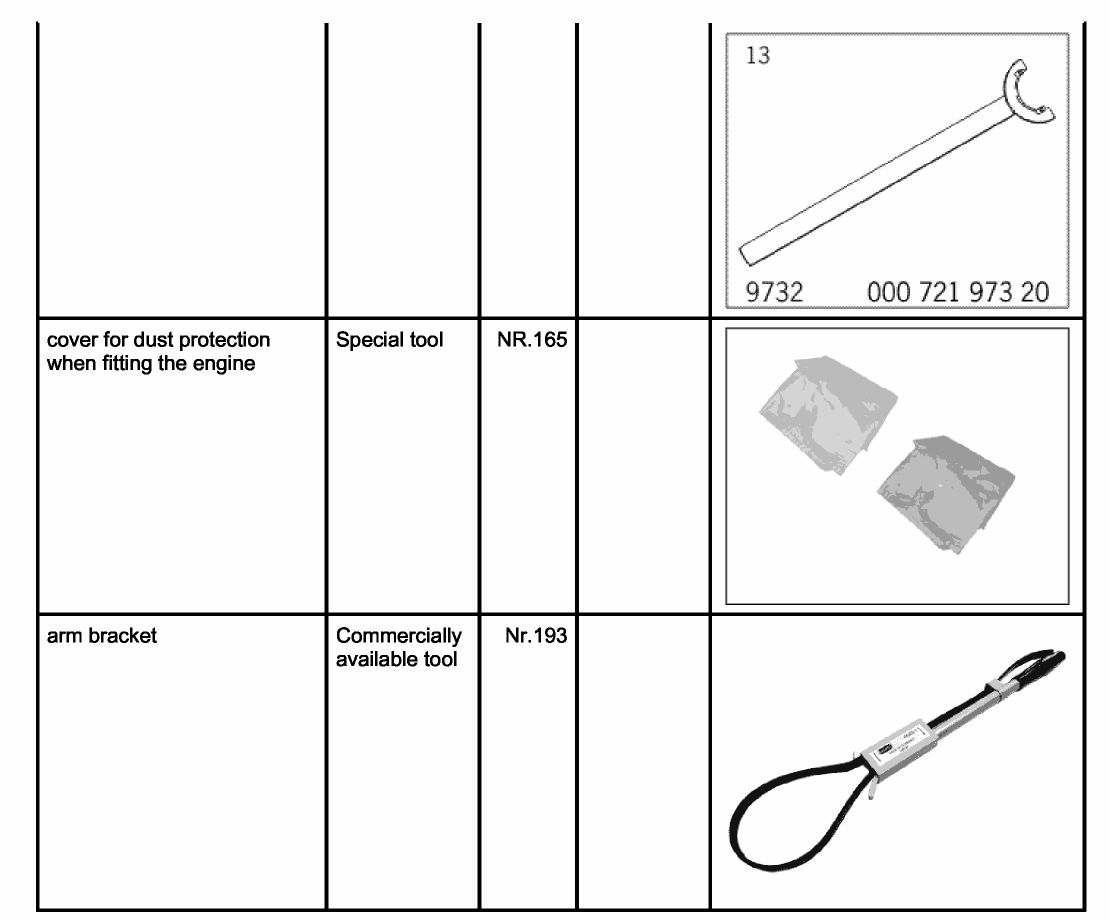 - Use the cover for dust protection when fitting the engine NR.165 on the engine assembly support.