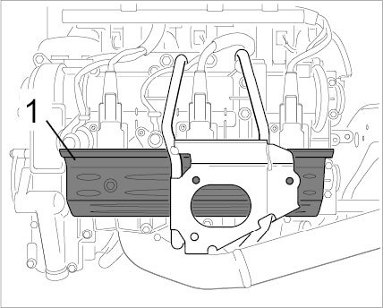 12.4. Lift the entire intake manifold up and off, seal intake openings on cylinder head (e.g. with adhesive tape).