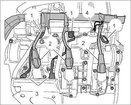 24.1. Unplug cable plug for knock sensors -2- and oil level sensor.