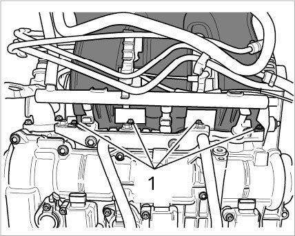 22.1. Unscrew two M6 Torx screws on the crankcase side, remove line (on the 3.8-liter the screws were already removed by removing the oil mist separator).