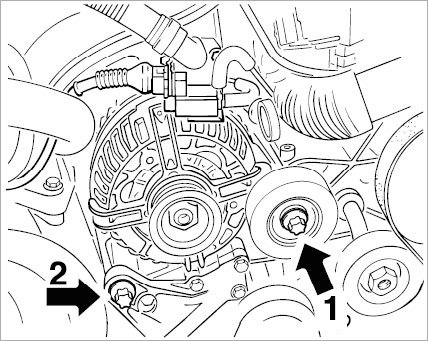 10. Detach holder for the throttle body on the power-steering pump. To do so, unscrew an M6 hexagon nut.