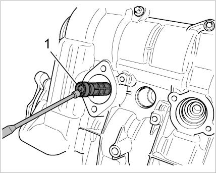 33.1. Pull the oil strainer for the camshaft control valve -1- out of the valve bore using a magnet, replace the oil strainer.