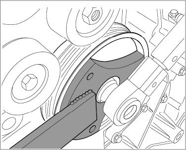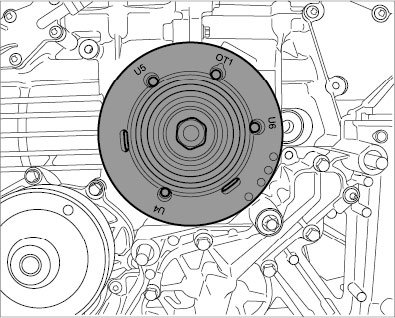 42. Move engine at the pulley of the crankshaft clockwise to the overlapping TDC of cylinder bank 4-6.