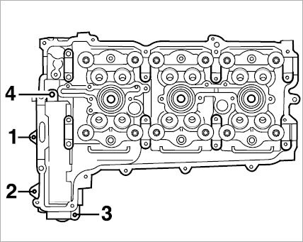 50. Unscrew four M6 x 30 Torx screws -items 1 - 4- on cylinder head 4-6.
