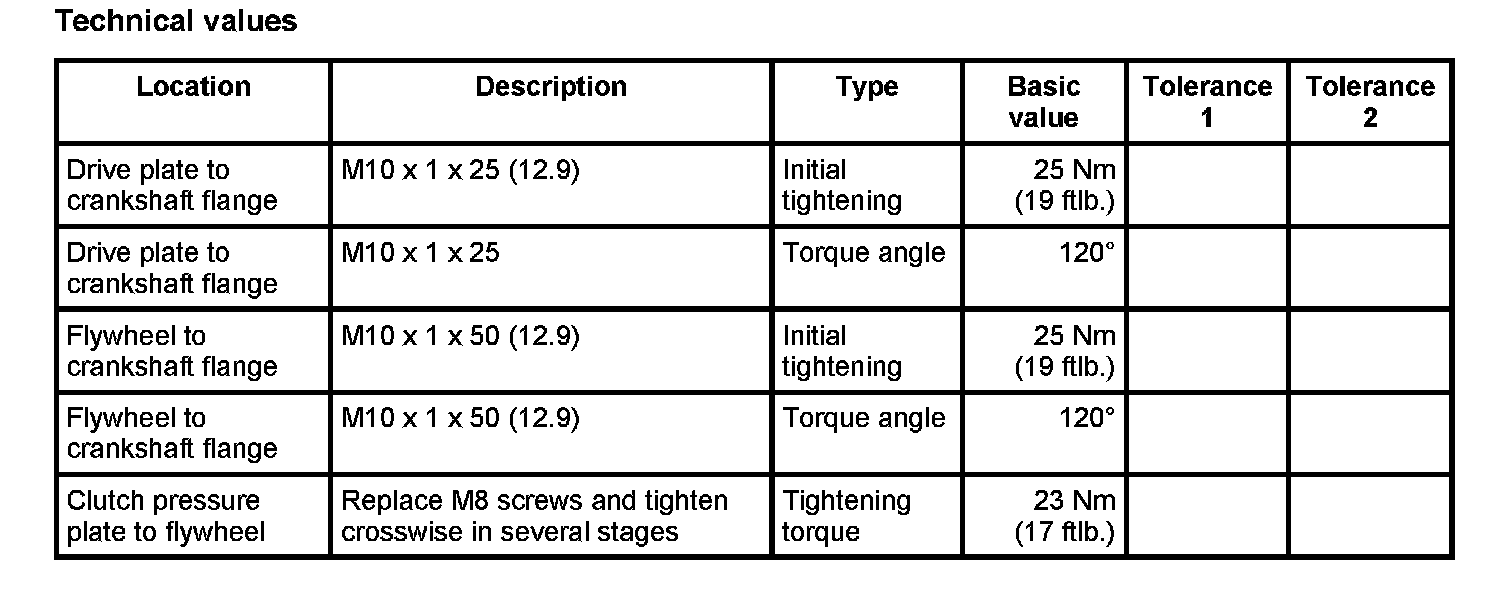 - Initial tightening: 25 Nm (19 ftlb.)