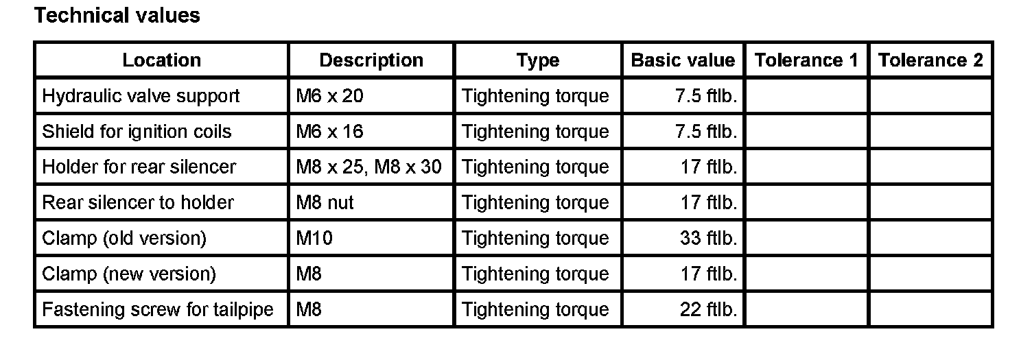 7. On cylinder side 4-6, fit the holder for the rear silencer and re-install the rear silencer. - Tightening torque: 17 ftlb.; - Tightening torque: 17 ftlb.; - Tightening torque: 33 ftlb.; - Tightening torque: 17 ftlb.; - Tightening torque: 22 ftlb.