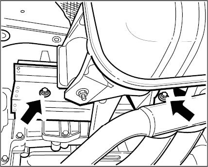 6. Fit the side shield to the relevant side of the engine. To do this, insert and tighten the two M6 x 16 Torx screws -arrows-. - Tightening torque: 7.5 ftlb.