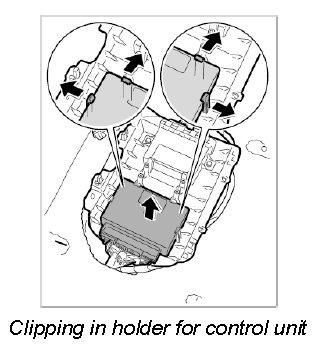 3. Press the four retaining clips carefully back and take the control unit out of the holder.