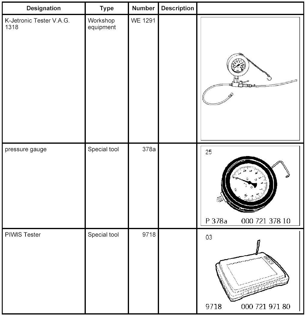6. Connect special tool test pressure gauge with lines from K-Jetronic Tester V.A.G. 1318 WE 1291 to the fuel lines.