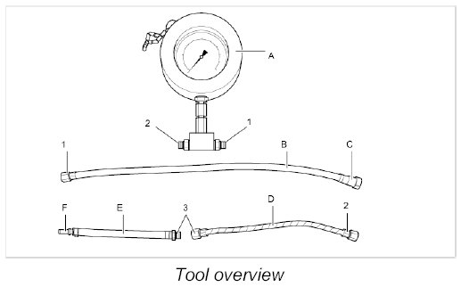 4. Start the engine and read off the fuel pressure on the pressure gauge.