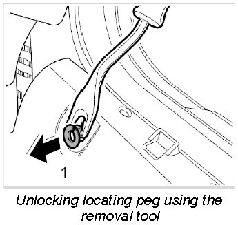 2. Unlock locating peg -1- using the removal tool