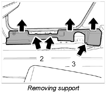 3. Unscrew fastening screws -2- and nuts -3- and carefully pull the support up and out of the retaining points.