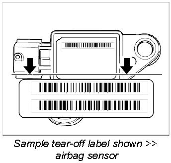 INFORMATION: If a new component (e.g. sensor, airbag control unit, airbag unit) of the airbag system has to be installed, the new component will be supplied with a barcode sticker (tear-off label).
