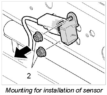 1. Position sensor on retaining bracket and screw it down with the fastening nuts -2-. M6: 8 Nm (6 ftlb.) ± 1 Nm (±0.5 ftlb.)