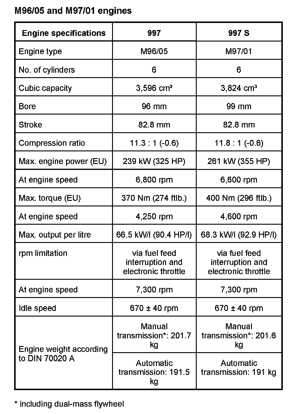 WM 1001TW Technical data, engine
