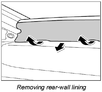 Position rear-wall lining and push it on in direction of arrow until the pegs of the cover clip in.