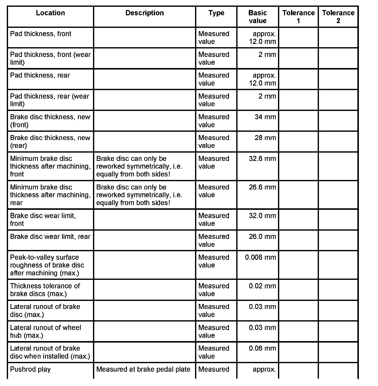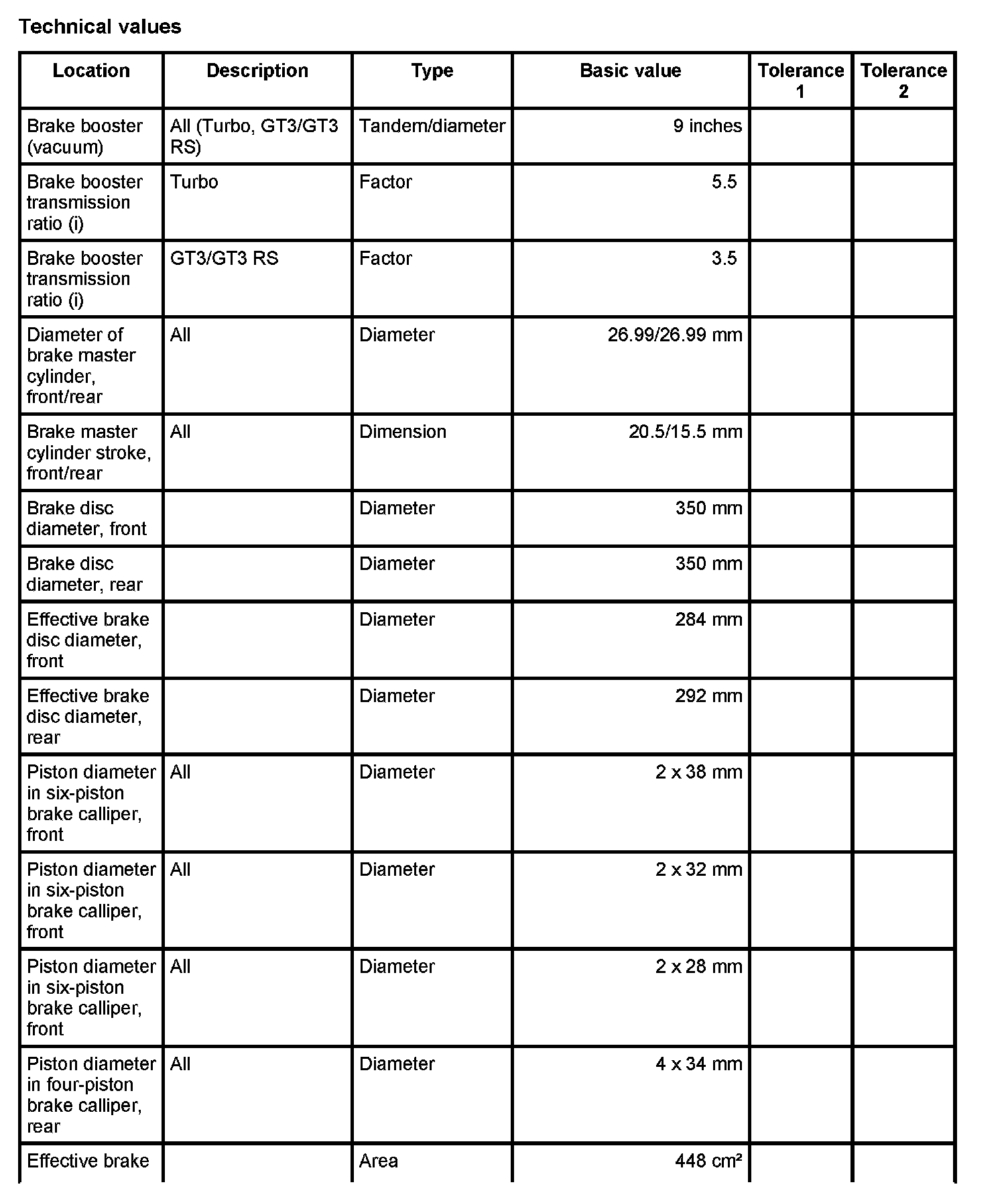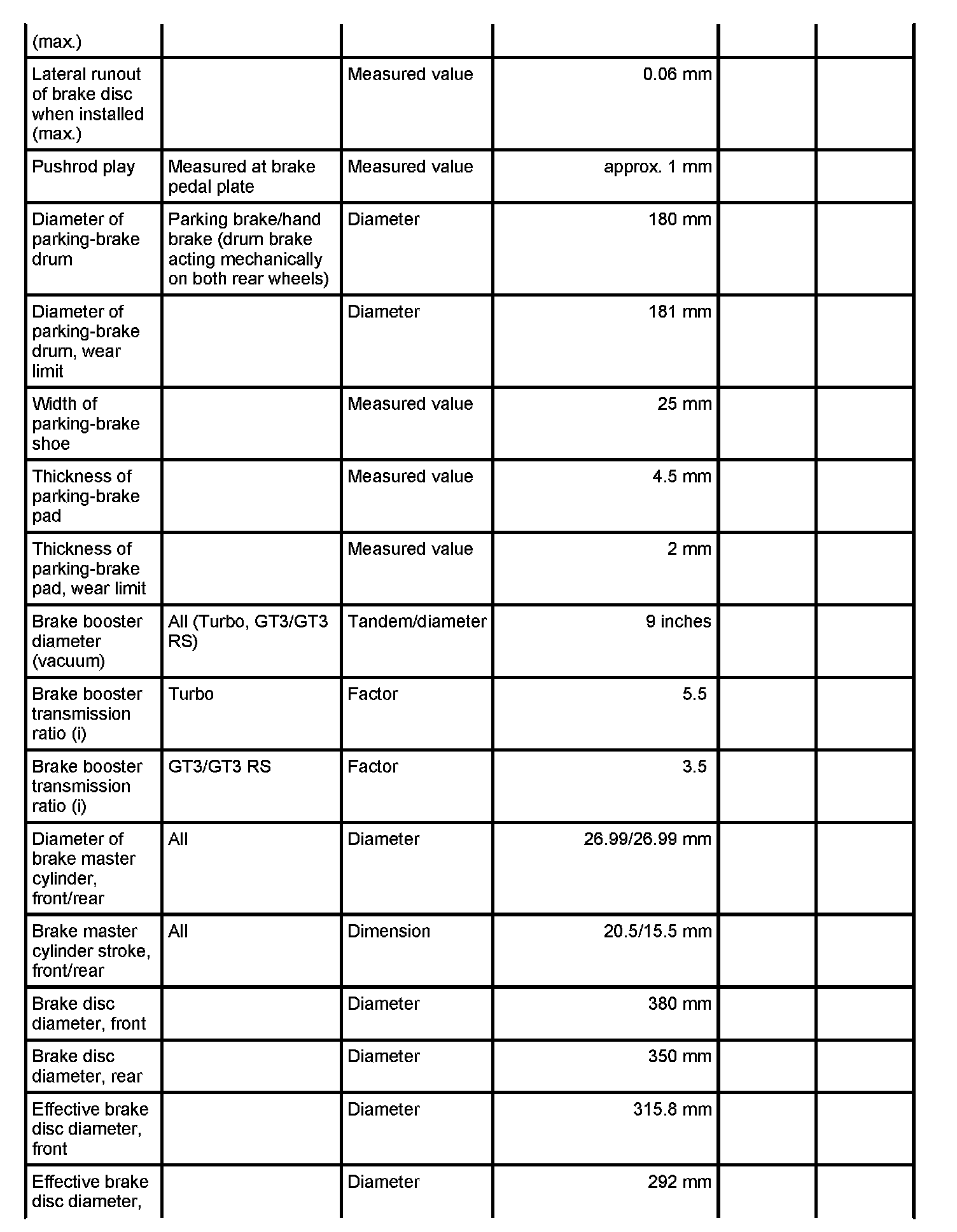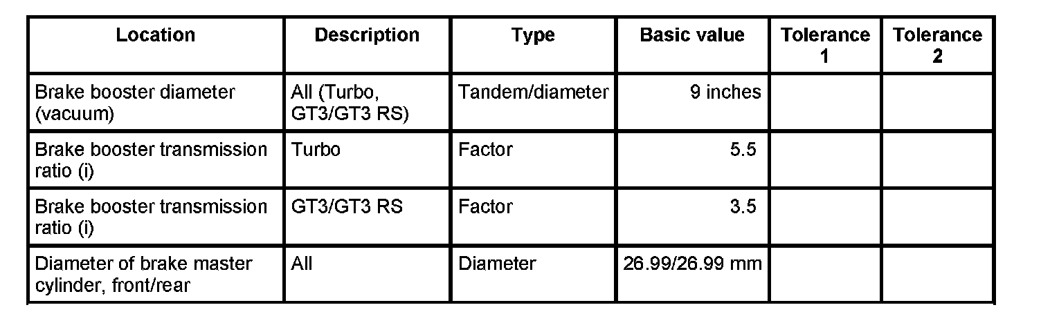 Test values/wear limits - 911 Turbo/GT3/GT3 IRS